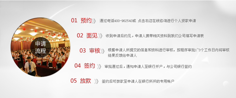 流程簡單較快當天放款,通過撥打頂呱呱服務熱線400-0110-698或者在線咨詢進行個人貸款申請。了解申請材料。資料準備齊全后約見,填寫申請表。