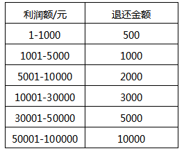 3)退款實際比例參考表: