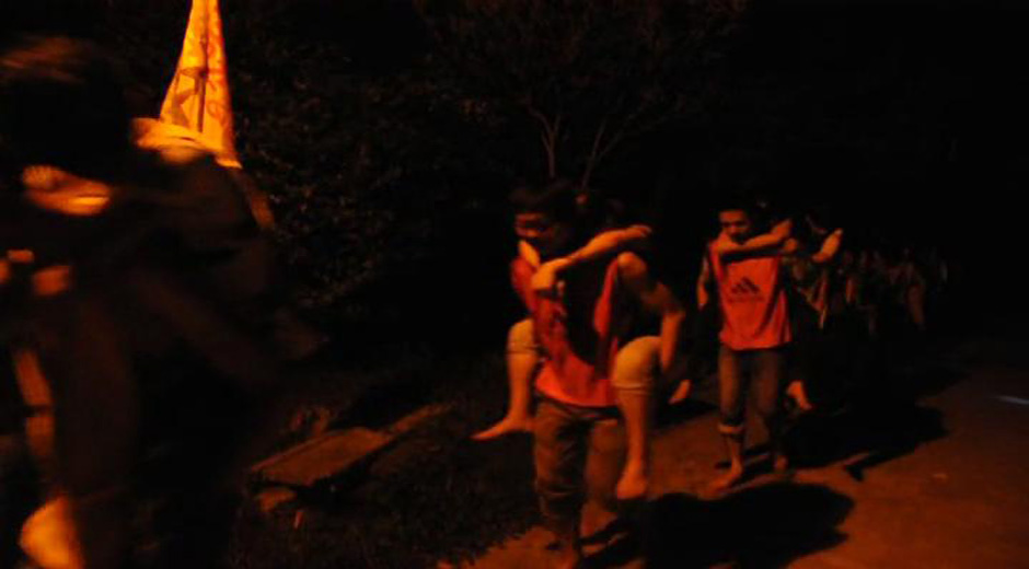 頂呱呱集團開展拓展訓練營活動,夜間穿行活動:被蒙住眼睛的隊員由另一名隊員背著或引著走,過程中不能講話,夜行活動考驗隊員的信任和協作...